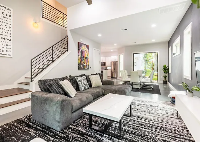**Welcome to Downtown Mini Mansion - Walk To Rainey, your gateway to Austin's vibrant culture and lively atmosphere.** Nestled just 4.5 kilometers from the charming Zilker Zephyr Miniature Train, this property makes it easy for guests to immerse themselves in the local attractions. Only 15 kilometers from Austin-Bergstrom International Airport, the mansion's convenient location allows for swift access, ensuring your journey is as smooth as your stay.